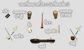 - ฆ้อง เช่น ฆ้องมโหรี,ฆ้องมอญ,ฆ้องวงใหญ่ ,ฆ้องวงเล็ก,ฆ้องโหม่ง
